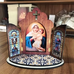 A Capela Mãe Rainha além de ser uma lembrança religiosa pode ser usada também como um item decorativo em casa, escritórios e ambientes corporativos. Seu tamanho facilita o uso em espaço limitados e que requerem descrição na decoração.
