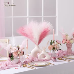 Serwalin Pampas Grass Pink 17,7 polegadas, 6 unidades, decoração artificial de capim-dos-pampas rosa sintético, decoração de quarto boho Short Pompus Grass Blush, decoração de Natal de Natal de Ano Novo sem derrame — Decoração rosa de capim-pampas — Este conjunto de capim-dos-pampas sintéticos inclui 2 hastes de creme, 2 hastes de blush e 2 hastes de rosa. A elegante e fofa pena gradiente rosa pode adicionar uma sensação romântica à sua casa ou evento. Pode ser uma decoração rosa exclusiva para o Dia dos Namorados ou das Mães. Vamos criar seu próprio espaço chique! - Vários cenários de decoração - O pequeno capim-dos-pampas é adequado para sala de estar, corredor e mesa de jantar. Além da decoração da casa, é perfeito para decoração de festas e casamentos. O caule tem arame de ferro no interior, você pode mudar o formato desse pequeno capim-pampa conforme necessário. - Não derrama e não requer manutenção - Em comparação com o verdadeiro capim-dos-pampas seco, o capim-dos-pampas falso não cai, o que significa que não há necessidade de perder tempo limpando a bagunça que cai. O capim-dos-pampas de seda não causará nenhuma alergia. Muito seguro para crianças e animais de estimação. - Tamanho e conjunto de embalagem - Comprimento do capim-pampa: 17,7 polegadas. Um pacote tem 6 hastes. Comprimento do caule: 3 polegadas. As plantas artificiais são feitas à mão, entenda que pode haver uma pequena diferença de cor. Se você tiver alguma dúvida sobre o produto, sinta-se à vontade para nos informar. - Serwalin é uma marca focada em casamento e decoração de casa, temos equipe de design profissional para combinar as cores do capim-pampa, equipe de controle de qualidade para garantir a qualidade do produto, você pode nos escolher sem se preocupar.