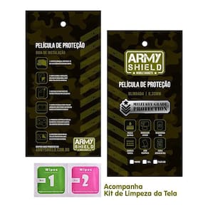 Kit Capinha Carteira + Película de Vidro 3D - ArmyshieldA capa carteira é para quem gosta de elegância, estilo e proteção. Muito mais que uma capa funciona também como uma carteira com espaço para colocar cartão. Protege totalmente seu aparelho de quedas e riscos. produzido em material sintético.Película de vidro 3D Blindada - Armyshield, traz o que há de mais moderno quando se trata de proteção de telas, com uma espessura de 0,33mm garante total proteção contra riscos e quedas e trincos.Proteção para o seu celular é com a Armyshield