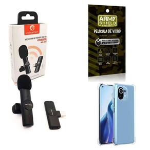 Microfone Sem Fio Profissional com presilha Tipo C H'maston O Microfone Sem Fio Profissional com presilha Tipo C H'maston de alta sensibilidade com captação de áudio 360 graus, possui resposta rápida para que você grave todos os detalhes de som Qualidade de som pura, comparável a uma equipe de gravação profissionalEste Microfone Sem Fio H'Maston MK-04 Wireless 360 com Interface USB-C para SmartPhone e Tablets Android, além de PC com entradas USB-C Type-C , possui uma alta qualidade de som, é portátil e muito fácil de usar, sendo Plug and play apenas colocar em seu smartphone e usar. O Sistema Wireless de Microfone Lapela para Equipamentos USB-C possui Bateria Interna com duração de até 10 horas e trabalha com uma distância de até 20m. O Microfone Sem Fio Profissional com presilha Tipo C H'maston é emparelhado automaticamente imediatamente após a conexão, sem necessidade de aplicativos, sem fios irritantes, sem depuração, apenas conexão instantânea Principais Características: Plug and play, conexão de um clique, fácil de usar. Áudio limpo e preciso e mão livres ao gravar Conector USB-C para SmartPhone e Tablets Android Captação de áudio sem ponto cego de 360 grau Latência muito baixa de 9 milissegundos Alcance de até 20 metros em locais sem obstáculos Função antirruído do circuito de redução de ruído Bateria Interna com duração de até 10 horas Qualidade de som pura e alta sensibilidade Compatível com uma variedade de dispositivos Adequado para todos os tipos de transmissão ao vivo, gravação, entrevista, gravação de vídeo, Vlogs, Youtubers, aulas online e muito mais.-------------Película de Vidro 3D Blindada - ArmyshieldA película de vidro 3D para celular é um produto de alta qualidade que oferece proteção e estilo para o seu dispositivo móvel. Feita de vidro temperado de alta resistência, a película é projetada para se encaixar perfeitamente na tela do seu celular, proporcionando uma cobertura completa e proteção contra arranhões, rachaduras e outros danos.A película de vidro 3D é especialmente projetada para se curvar suavemente ao redor das bordas do seu celular, criando uma aparência elegante e sem bordas. Isso significa que você pode desfrutar de uma experiência de visualização imersiva e sem interrupções, sem se preocupar com a película descolando ou interferindo na sensibilidade da tela.Atenção: O produto acompanha apenas o que apresenta na imagem.