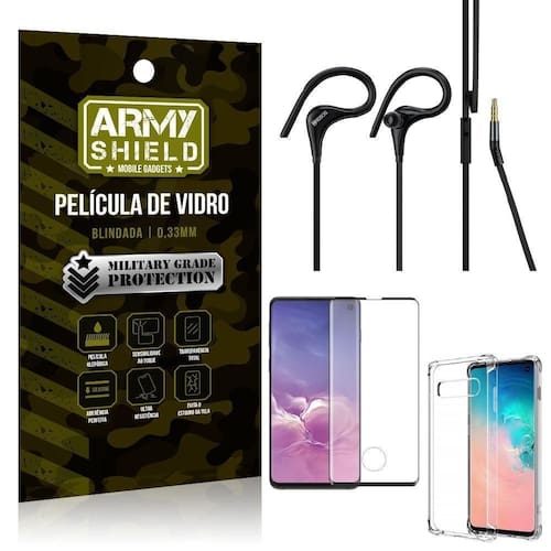 Fone sport hs92 + capinha anti impacto + película 3d - armyshield