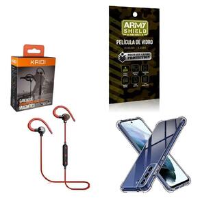 Fone de Ouvido Esportivo sem fio Magnético e com gancho para esportes KD-904Se você procura um fone para as atividades diárias, exercícios e movimento o fone sem fio KD-904 é a escolha idealContém Tons graves , profundos e complexos. Um verdadeiro som de qualidadeControle a reprodução de músicas e vídeos direto do botão de controle.Atenda e desligue chamadas, microfone HD in line embutido com controle de faixas.Com imã embutido que não atrapalha e não fica caindo da orelha, produto de design intra-auricular projetado para ser confortável ao ouvido.Isolamento de ruídos sem vazamento de som. O fone utiliza uma tecnologia aeronáutica de redução de ruído. Isola interferência de ruído externo. Mergulhe no mundo da músicaEspecificaçãoVersão: V5.0Tempo de espera: 200hTempo de conversação: 6hTempo de reprodução de música: 5hTempo de carregamento: 1hFrequências RF: 2,4GHzFaixa de frequência: 2.402G-2.480GTemperatura ambiente: -20/ +60CDistância de transmissão: 10mEspecificação do DriverUnidade do driver: 10mmSensibilidade: 90dB +-3dBImpedância: 32 +- 15%Resposta de frequência: 20-20000HzComprimento do cabo: 600mm-----Película de Vidro 3D Blindada - Armyshield Com Kit de InstalaçãoA película de vidro 3D para celular é um produto de alta qualidade que oferece proteção e estilo para o seu dispositivo móvel. Feita de vidro temperado de alta resistência, a película é projetada para se encaixar perfeitamente na tela do seu celular, proporcionando uma cobertura completa e proteção contra arranhões, rachaduras e outros danos. ------- Capinha Silicone Anti Impacto Anti Shock Transparente - ArmyshieldA capa de celular antishock é um produto de alta qualidade que oferece proteção e estilo para o seu dispositivo móvel. Feita de material de TPU poliuretano termoplástico de alta resistência, a capa é projetada para absorver impactos e proteger o seu celular contra quedas, arranhões e outros danos.Somos especialistas em Acessórios para celular há mais de 7 anos Antes de comprar verifique se o modelo do seu celular é o mesmo do produto comprado. Agradecemos a Preferência