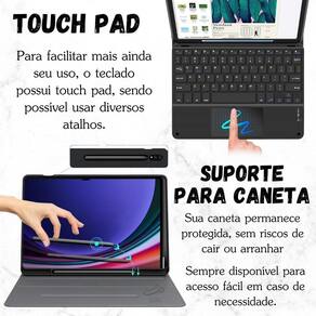 Compatível com o Tab S9 Fe 10.9 X516 X510 / S9 11 X710 X716, essa capa magnética possui teclado embutido que pode ser facilmente conectado ao seu dispositivo. Para conectá-lo, basta ligar o teclado e o Bluetooth do seu aparelho, apertar as teclas FN + C no teclado e procurar o Bluetooth com o nome keyboard no dispositivo para conectar.