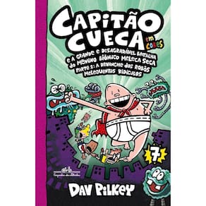 Título do livro : Capitão Cueca e a grande e desagradável batalha do menino biônico Meleca Seca - Em cores! Subtítulo do livro : Parte 2: A revanche dos robôs melequentos ridículos Série : As aventuras do Capitão Cueca (7) Autor : Pilkey, Dav Idioma : Português Editora do livro : Editora Schwarcz SA Capa do livro : Mole Volume do livro : 7 Ano de publicação : 2019 Quantidade de páginas : 184 Altura : 205 mm Largura : 135 mm Peso : 320 g Com páginas para colorir : Não Com realidade aumentada : Não Tradutores : Lindoso Galiana Gênero do livro : Infantil Subgêneros do livro : Ficção infantil Tipo de narração : Conto Idade mínima recomendada : 18 anos Ilustradores : Pilkey Dav Data de publicação : 16-09-2019