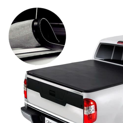 Sistema de fechamento seguro por não permitir a abertura da lona externamente com a tampa da picape fechada.