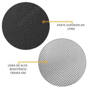 Estrutura e sistema de travas fabricadas em alumínio injetado com encaixe trek, acompanha varetas transversais, mantendo a lona esticada para que não haja acúmulo de água, acabamento debrum de lona em trama de 6x6 e tensores destacáveis para maior praticidade em seu manuseio, além de possuir puxador para facilitar a abertura da capota.