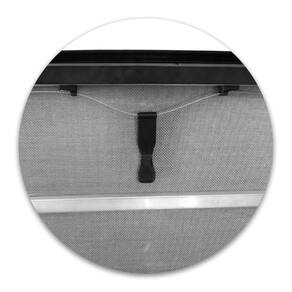 Estrutura e sistema de travas fabricadas em alumínio injetado com encaixe trek, acompanha varetas transversais, mantendo a lona esticada para que não haja acúmulo de água, acabamento debrum de lona em trama de 8x8 e tensores destacáveis para maior praticidade em seu manuseio, além de possuir puxador para facilitar a abertura da capota.