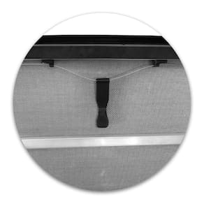 Estrutura e travas fabricadas em alumínio injetado com encaixe trek, sendo o material já conhecido pela excelente qualidade e resistência, com drebrum de lona em trama de 8x8 e tensores destacáveis para uma maior praticidade em seu manuseio, além de possuir puxador para facilitar a abertura da capota.