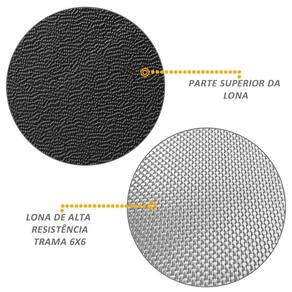 Estrutura e travas fabricadas em alumínio injetado com encaixe trek, sendo o material já conhecido pela excelente qualidade e resistência, com drebrum de lona em trama de 6x6 e tensores destacáveis para uma maior praticidade em seu manuseio, além de possuir puxador para facilitar a abertura da capota.