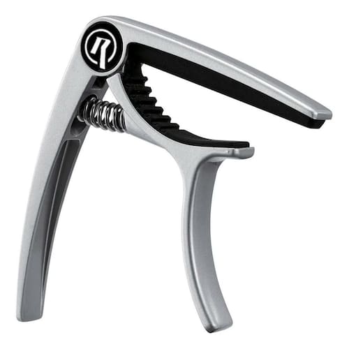 O acabamento prateado confere um toque de sofisticação ao capotraste, combinando perfeitamente com o visual do seu violão. Além disso, seu mecanismo de travamento assegura que o capotraste permaneça firmemente posicionado no braço do violão, proporcionando uma pressão adequada nas cordas e garantindo uma excelente sonoridade.