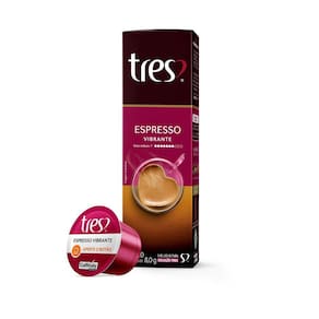 Cápsula Café Expresso Três Corações Espresso Vibrante Cx10un Sabor: Espresso VibranteIntensidade 7 Blend com predominância de cafés do tipo arábica de origens do Cerrado Mineiro e Alta Mogiana Paulista, com altitude média de 900 metros.O espresso mais vendido da 3Corações no Brasil, o Espresso Vibrante é uma bebida encorpada de personalidade marcante, com uma excelente doçuraE notas de chocolate e caramelo. Tipo de bebida: Café ExpressoPeso Liquido: 80gContém 10 capsulas de 8g.Indicação de preparo:50ml Não contém gluten. Conservar em local seco, fresco e inodoro. Para uso exclusivo nas cafeteiras TRES Corações A Três Corações oferece a maior variedade de cafés espressos e bebidas em cápsulas, unindo tecnologia, praticidade e muito sabor, para trazer a você A melhor experiência em extração de bebidas. Tudo isso ao simples toque de um botão e com a qualidade que somente uma empresa líder como o Grupo 3 Corações Poderia ter.