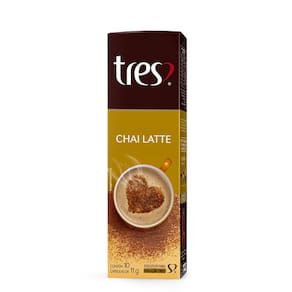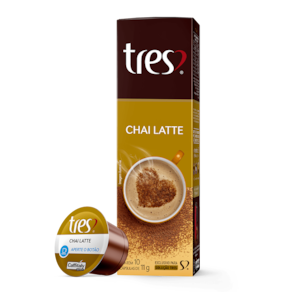 O Chai Latte em cápsula TRES 3 Corações é uma bebida cremosa de inspiração na tradicional receita indiana de chai latte a base de leite e chá preto. Com sabor intenso e muito aromático tem como característica marcante um leve apimentado, devido à combinação de gengibre com especiarias: cardamomo, cravo e canela. Produzido com o sabor das especiarias do oriente. Se você gosta de sabores exóticos a cápsula de Chai Latte TRES 3 Corações é para você!