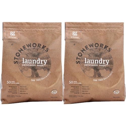 - Contém: 2-50 sacos de cápsulas de detergente para roupas Grab Green Stoneworks Oak Tree (100 cápsulas no total)