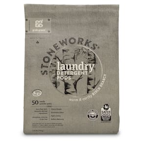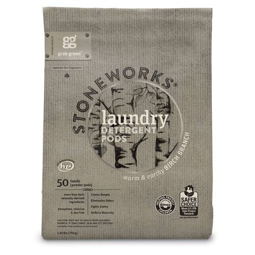 Grab Green Cápsulas de detergente para roupas Stoneworks, alimentadas por cápsulas de pó à base de plantas e minerais derivadas naturalmente, ramo de bétula, 50 unidades (pacote com 1) cargas -