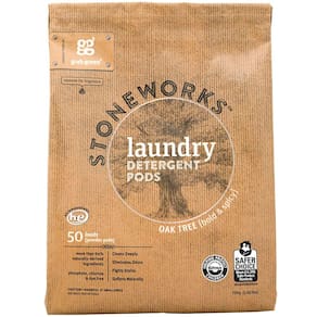Grab Green Stoneworks Cápsulas de detergente natural para roupas em pó, carvalho, 50 cargas