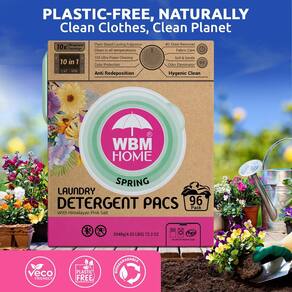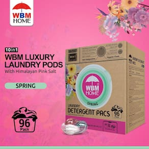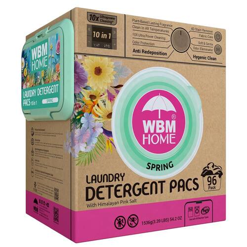 WBM Cápsulas de detergente para roupas domésticas, fragrância de primavera, 96 unidades - cápsulas concentradas HE com 10 x limpeza ultra potente e removedor de manchas 4D