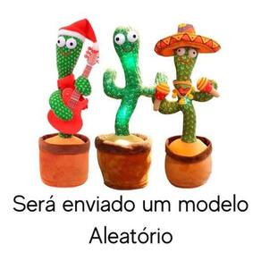Atenção: O modelo a ser enviado é aleatorio não podendo ser escolhido. Alguns cactos não acompanham os acessorios, o cacto vem lacrado do fabricante e por isso não conseguimos determiar qual modelo será enviado. Agradeço a compreensão. --------------------------------------------------------------------------------------------------------------- Iliminação em led Repete o que a criança fala Canta até 120 músicas diferentes Produto não tóxico, testado e aprovado pelo inmetro O cacto é um brinquedo divertido e distrativo, proporciona momentos incríveis para as crianças, bebês e pets. Ele imita, brilha e dança conforme o ritmo da musica, também pode ser como decoração, deixando o ambiente charmoso e divertido. Ficar sem fazer nada pode ser um tédio para uma criança principalmente quando os pais não estão dispostos a brincar, crianças gostam de brincar e se divertir, e o brinquedo cacto prende a atenção da criança repetindo sua fala e sons Novo brinquedo da criançada, o cacto dança e fala vem com uma função de gravação para repetir qualquer linguagem que você fala, de uma maneira engraçada, ele é ótimo para educação dos filhos e diversão da família, é um grande presente para uma criança. O brinquedo pode cantar e dançar 120 canções felizes e danças animadas. Ele é interativo e perfeito para todas as idades, auxiliando nas primeiras palavras do bebe, diverte as crianças e adultos. Benefícios Estimula a fala das crianças; Ajuda no desenvolvimento cognitivo do seu filho; Pode ser como decoração; Ele canta, dança, brilha e imita os sons que escuta; Garante horas de diversão sadias entre pais e filhos; Produto não tóxico. -------------------------------------------------------------------------------------------- Especificações: Alimentação: pilha aaa não acompanha Toca 120 canções Pode tocar, dançar, mover, girar e acender luzes Material: plush macio, confortável, e não toxico Itens inclusos: 1 cacto dançante 1 cabo usb Homologação Inmetro: ABCP-BRI-0054-2021-11
