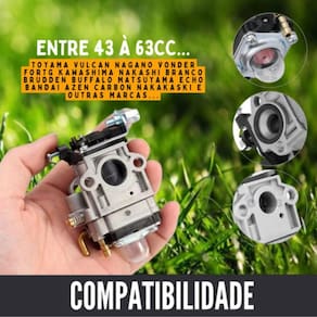 Carburador para roçadeira Modelos: 43/52cc Diâmetro do venture: 15 mm Compatibilidade: toyama, branco garthen, nakashi, trapp shindaiwa, kawashima, yamasaki e outras marcas. Embalagem: 1 carburador + 1 junta do carburador. Marca: Não Informado
