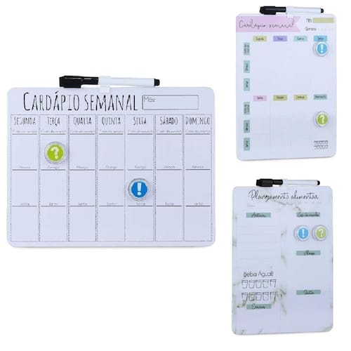 Com tamanho ideal e design funcional, ela permite planejar café da manhã, almoço e jantar da semana inteira de forma clara e prática.