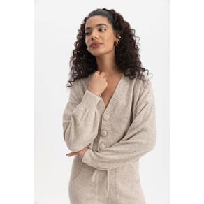 O cardigan feminino Essendi é confeccionado em tricot de alta qualidade. A peça conta com mangas longas, fechamento frontal por botões e gola V, além de seus detalhes delicados que trazem ainda mais estilo para ele. A peça certa para te acompanhar em todas as fases da estação. Aposte na leveza e conforto para um dia a dia de muito estilo. Marca: Não Informado