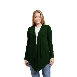 Cardigan Plus Size Feminino Casaco Kimono Com Bico Manga Longa - VERDE - G2
