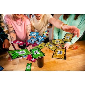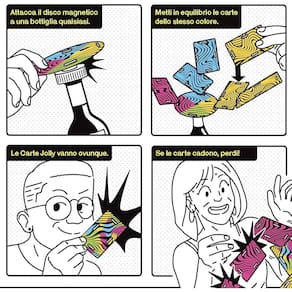 Basta fixar a plataforma magnética em qualquer garrafa e, em seguida, os jogadores se revezam equilibrando suas cartas. Livre-se de todas as suas cartas e você estará seguro... por enquanto. Mas, eventualmente, a gravidade vai te pegar! Um jogador acabará derrubando todas as cartas. Certifique-se de que não seja você.