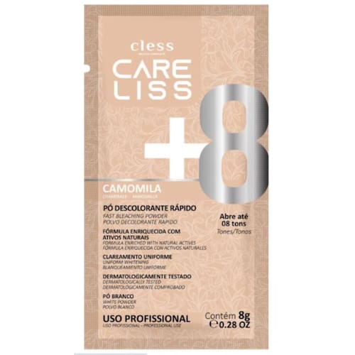 Pó Descolorante Care Liss Camomila, age oferecendo clareamento e luminosidade aos fios sem irritações, pois é enriquecido com extrato de camomila que contém propriedades calmantes e suavizantes. sua exclusiva fórmula não levanta pó (Dust Free), é dermatologicamente testada e suavemente perfumada. Fácil e prática de ser aplicado, o Pó Descolorante Care Liss Camomila deixa os fios macios, protegidos e mantem o tom por muito mais tempo.