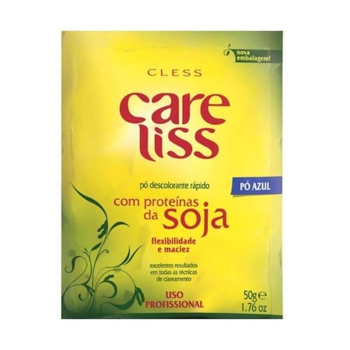 Care Liss Proteína Da Soja Pó Descolorante 50g DESCRIÇÃO: Clareador. Os ativos de soja garantem fios muitos mais flexíveis e tons que duram por muito mais tempo.AÇÃO/ATIVOS: O pó azul ainda neutraliza o indesejado efeito amarelo. Com uma aplicação rápida e prática, sua exclusiva fórmula não levanta pó (Dust Free), é dermatologicamente testada e suavemente perfumado.MODO DE USAR: Acrescente a medida desejada do Care Liss Pó Descolorante em um recipiente não-metálico e adicione aos poucos o oxidante (vide proporção e oxidante abaixo) e misture com uma espátula não-metálica até formar um creme de consistência homogênea. Faça a PROVA DE TOQUE e TESTE DE MECHA antes de aplicar o produto. Cabelos, utilize 2 ou 3 medidas (a proporção pode variar de acordo com a viscosidade desejada) da Água Oxigenada para 1 de Care Liss Pó Descolorante. A aplicação deverá ser feita sobre os cabelos secos e não lavados, iniciando na nuca ou nas partes mais escuras. Após o tempo de ação, deve-se lavar o cabelo como de costume para retirar totalmente o produto. Deixe agir de 10 a 45 minutos no máximo, conforme o grau de clareamento desejado e a estrutura, porosidade e cor-base dos cabelos. Não se exponha ao sol durante a aplicação. Ao término do tempo de ação, enxágue bem com água morna e lave os cabelos com shampoo e condicionador. Para a intensidade desejada de descoloração, recomendamos o uso das seguintes águas oxigenadas: Tipo de Clareamento Care Liss Água Oxigenada Cremosa: 1 a 2 tons e pêlos do corpo - Água Oxigenada de 10 volumes. 2 a 3 tons- Água Oxigenada de 20 volumes. 3 a 4 tons - Água Oxigenada de 30 volumes. 4 a 6 tons - Água Oxigenada de 40 volumes.ESTE ANÚNCIO CONTÉM: 01 Care Liss Proteína Da Soja Pó Descolorante 50gCare Liss ProteÃna da Soja PÃ Descolorante 50g