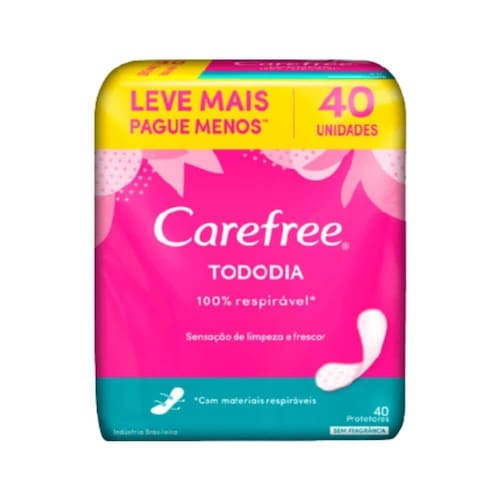 Carefree Todo Dia Absorvente Diário S/ Perfume C/40 DESCRIÇÃO: Carefree Proteção é um protetor íntimo na medida certa para fluxos leves, tais como comecinho e finalzinho da menstruação e pequenos escapes.AÇÃO/ATIVOS: Ele possui uma película protetora, que não deixa o fluxo passar para a calcinha.MODO DE USAR: Fixar o absorvente na calcinha sempre que desejar.ESTE ANÚNCIO CONTÉM: 01 Carefree Todo Dia Absorvente Diário S/ Perfume C/40Carefree Todo Dia Absorvente DiÃrio S/ Perfume C/40