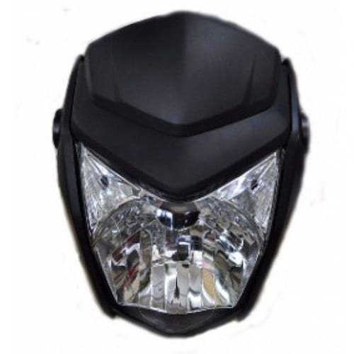 COR: PRETO FOSCO Composição:Bloco ópticoCarenagens laterais do farolCarenagem central Fabricante: FocoObs.: Não acompanha parafusos de fixação na motocicleta.