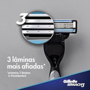 Gillette Mach3 proporciona um barbear mais rente e confortável pois possui três lâminas corte-diamante que proporcionam uma depilar mais rente e suave, além de possuir fita Indicator que indica o momento ideal de trocas as lâminas.