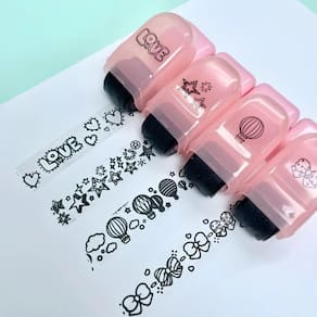 Decore com amor: Dê um toque especial em seus desenhos, cadernos, cartões e presentes e até mesmo em sua roupa com as estampas divertidas do Carimbo Roller Love.