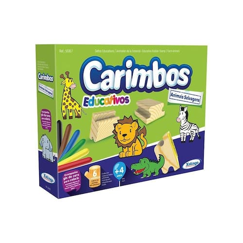 Carimbar é muito divertido, ainda mais em boa companhia! O Carimbos Educativos Animais Selvagens acompanha 6 carimbos de madeira, 01 almofada com tinta atóxica, giz de cera e um 01 bloco de papel. São desenhos super divertidos que vão encantar a criançada. Estimula a coordenação motora, a criatividade e imaginação. Indicado para crianças a partir de 4 anos.