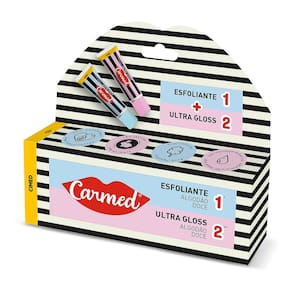 Carmed SOS Algodão Doce Esfoliante 10g + Ultra Gloss 10g Passo 1 - EsfolianteRemove as células mortas com suavidade, sem agredir, deixando os lábios renovados. Passo 2 - Ultra GlossLábios macios, hidratados e com um brilho espelhado incomparável.