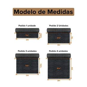 1 unidade (1m) = 2,00m largura X 0,50m comprimento2 unidades (2m) = 2,00m largura X 1,00m comprimento3 unidades (3m) = 2,00m largura X 1,50m comprimento4 unidades (4m) = 2,00m largura X 2,00m comprimento5 unidades (5m) = 2,00m largura X 2,50m comprimento