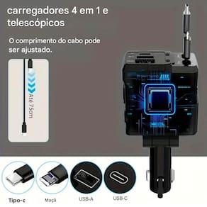 Compatível com smartphones, tablets, GPS, fones, power banks e muito mais