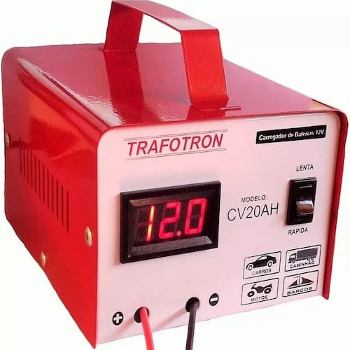 Com uma capacidade de carga de 20A/H, esse carregador é recomendado para baterias de carros, motos, barcos e caminhões. Ele é bivolt, podendo ser utilizado tanto em redes elétricas de 110V quanto de 220V. Além disso, oferece duas opções de carga: lenta e rápida.