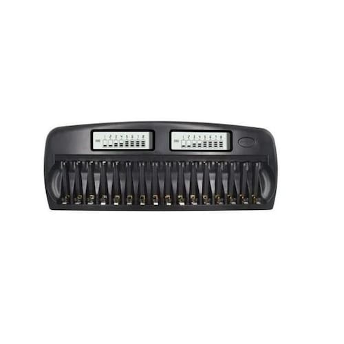 Características principais: Carrega até 16 baterias nimh aa ou aaa recarregáveis. O tempo de carga varia entre 5 horas para baterias aa e 2 horas para aaas. Dezesseis indicadores lcd individuais exibem o status da carga de cada bateria.