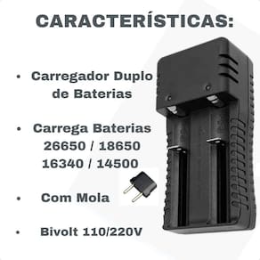 Este anúncio contém: 1 Carregador Duplo; Características: Carregador de bateria Carrega 16340, 18650, 17335, 14500 e outras. Indicador de carga LED Medidas: 110mm x 40mm x 50mm - compacto e facil de transportar Voltagem: 110-240V, 47-63Hz; Tensão de saída: 3.7v/500ma Dimensões: 16mm x 34mm; Carregamento total de 10 à 12 Horas. Aguarde até que sua total capacidade de carga esteja completa. Seja bem vindo Você chegou em uma equipe especializada para melhor te atender. Todas as fotos são de produtos reais e de exclusividade da nossa loja, sendo assim apenas nós temos o direito de imagem sob qualquer mercadoria anunciada. Veja nossos outros produtos um pouco mais abaixo em Mais Anúncios do Vendedor. Você chegou até aqui se você tem alguma dúvida pendente sobre o produto anunciado nos diga. Estamos sempre aqui para lhe responder sempre A Nossa empresa é extremamente profissional e especializada com produtos de alta qualidade, pois nosso objetivo é ver vocês clientes satisfeitos com os produtos e atendimento. Perguntas e Respostas: Vocês enviam para todo o Brasil Quanto fica o e qual o prazo de entrega R: Enviamos para todo o Brasil. Para conferir o ou o prazo basta verificar no campo acima, ao lado das fotos, ou entrar em contato conosco para mais informações, caso ainda tenha dúvidas. Esse produto vem bem embalado R: Sim, todos nossos produtos são muito bem embalados para evitar qualquer chateação para nossos clientes. Ele vem igual está na foto R: Sim, as fotos de nossos produtos são tiradas por nós, para garantir melhores detalhes de informações visuais, garantindo assim melhor entendimento de como realmente é o produto. Marca: Não Informado