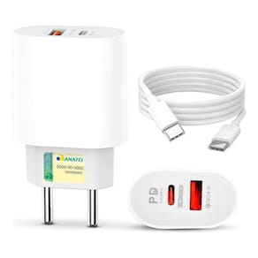 Carregador com 2 portas (USBA e USBC), potência de 20W, bivolt automático, proteções contra sobrecorrente, sobrecarga e aquecimento. Formato compacto.Tipo