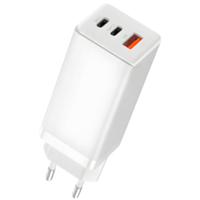 Carregador Rápido GaN 65W Quick Charger 3 Portas – Potência e Velocidade em Tamanho Compacto!