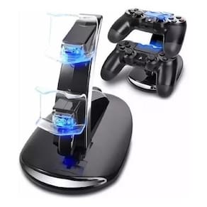 É muito simples de usar Basta conectar o controle na base para recarregar, enquanto estiver com a luz de led vermelha ligada, é sinal de que o controle esta carregando. Quando a luz de led azul acender o seu controle estará totalmente recarregado. Esta Base Carregadora para Controle PS4 pode ser alimentada através do cabo USB (incluso no pacote) no PC ou qualquer saída USB 5V.