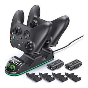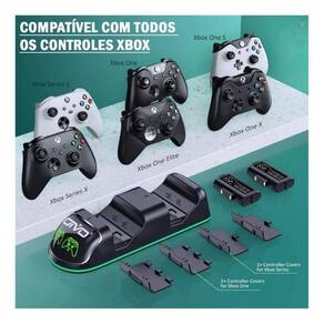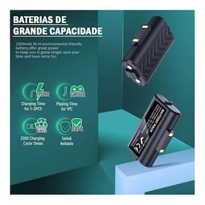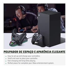 Carregador controle xbox one series s e x +2 baterias 800mah DescriçãoCarregador dock duplo charge para controle x box one/x/s e xbox séries s/x com duas baterias inclusas Carregador duplo(dual) doca para x box séries/one/x/s Designer especial para todos os controles de x box one e séries : O carregador para os controles de x box one acompanha duas baterias recarregáveis além de suportar todos os modelos de rg xbox one / xbox one s / xbox one x / xbox one elite. Carregamento rápido: Carregamento completo de dois controles na doca de 2,5hrs, carregamento super rápido; Com a doca não precisará mais utilizar as pilhas aa; Duração de carga da doca de até 7 hrs; A doca conta com 2 metodos de carregamento: 1- carregamento direto das baterias na base de carregamento; 2- carregamento das baterias dentro do controle; Indicação leds: 1 - luz vermelha indica que os controles estão seno carregados; 2 -luz verde indica a carga total do controle; O produto conta com um designer muito bonito com suas luzes leds frontais e laterais; Marca do produto:dobe Modelo : tyx-532x Voltagem de entrada: 5v/2a Corrente 800mah Voltagem de saída 2.4v Itens inclusos na embalagem: 01x carregador para controle x-box séries/ one/x/s dobe 02x bateria recarregáveis 800mah xbox séries / one s/x 02x adaptador para bateria xbox séries s/x 02x adaptador para bateria xbox one s/x 01x cabo para carregamento doca Marca: Tz