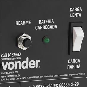 A Vonder é uma marca reconhecida pela qualidade e inovação em seus produtos, garantindo que você tenha em mãos um equipamento confiável e duradouro. O CBV 950 possui proteções contra superaquecimento e sobrecargas, além de avisos luminosos que indicam o status do carregamento. Com voltímetro e amperímetro digitais, você terá maior precisão e controle durante o processo de carga.