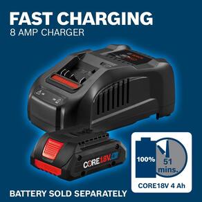 BOSCH Carregador rápido de bateria BC1880 18V - Projetado para velocidade: proporciona um carregamento pelo menos 40% mais rápido do que os carregadores padrão bosch de 18 V com bateria core 18v 8 ah - Compatibilidade com o sistema AMPSHARE: baterias e carregadores de 18 V são compatíveis com ferramentas elétricas bosch 18v e uma lista crescente de produtos sem fio das marcas ampshare - Funciona com baterias de alto amplificador: carrega totalmente uma bateria gasta de núcleo 18v 4 ah em 51 minutos - Corrente de carregamento de 8 AMP: proporciona 4x a corrente de carregamento em comparação com o carregador padrão gal18v-20 - Design de carregamento rápido: deixa os usuários prontos para energia mais rápido com carregamento de modo duplo - Ventilador de resfriamento: ajuda a proteger as baterias do superaquecimento durante o carregamento - Carga regulada de modo duplo para proteção celular: carga rápida até 80%, 20% restantes é o modo de longa vida útil - SOLUÇÃO DE CARREGAMENTO FLEXÍVEL: Compatível com baterias bosch 18v e o sistema ampshare - Bosch Os carregadores de 18 V são cobertos por uma garantia limitada de cinco anos. Para obter mais informações, visite o site do fabricante - Sistema AMPSHARE: Sistema de bateria projetado para ser compatível com várias marcas em muitos produtos sem fio para facilitar o gerenciamento do seu dia de trabalho