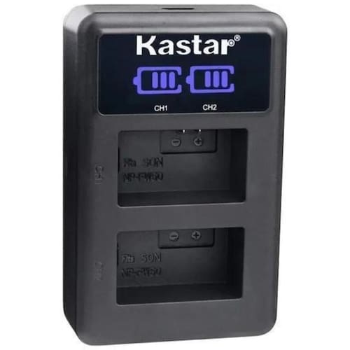 O carregador USB duplo fino Kastar LCD, pode ser alimentado por USB Wall & Auto Charger ou por um computador.