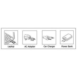 Pode ser alimentado por USB Wall & Auto Charger ou por um computador, vem com um cabo Micro USB.