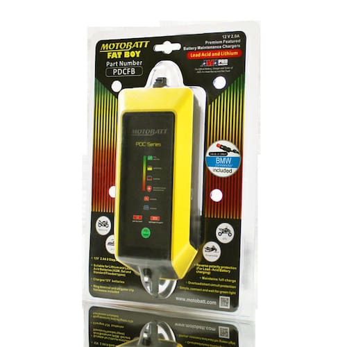 Tipo de Carregador: Carregador de Lítio e Lead Acid PDCFB Motobatt Voltagem: 12 volts Capacidade: 2 amperes Entrada: Comutação Automática 120-240V 50/60Hz Voltagem Máxima: 14.9V (Lead) 14.6V (LiFePO4) Aplicação: Baterias de 12V Padrão inundadas, AGM, GEL, Lítio Pode ser Fixado na Parede: Sim Bateria Recomendada: Bateria de Lead Acid de 4-100AH, Bateria de LiFePO4 de 2-20AH