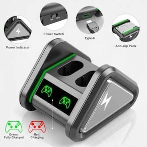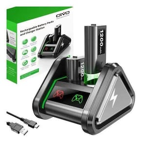 2 x 1200 mAh número de batería OIVO com base de carga para Xbox Series XS / Xbox One / Xbox One SX / Xbox One Elite Carregamento de LED: Baterias recarregáveis duplas com dock de carregamento para a bateria do controlador Xbox série x tem um indicador de carga LED claro, totalmente carregado/em standby, carregamento vermelho. O Kit de Carregador de Bateria do Controlador Xbox vem com um cabo de carregamento Micro USB Type-C.CONTÉM:1 Base de carregamento,Baterias de 2 x 1200 mAh,1 Cabo USB Tipo-C.