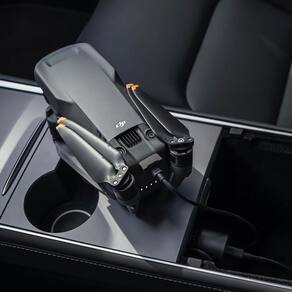 - Imprescindível em qualquer lugar, o carregador de carro de 65W pode carregar diferentes dispositivos no carro. Ele fornece uma potência de saída estável de 65 W e duas portas de saída (USB-C e USB-A) para carregar a Intelligent Flight Battery e um controle remoto ao mesmo tempo.